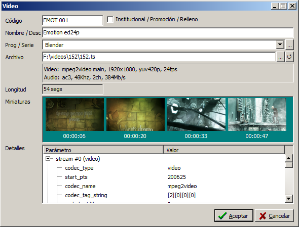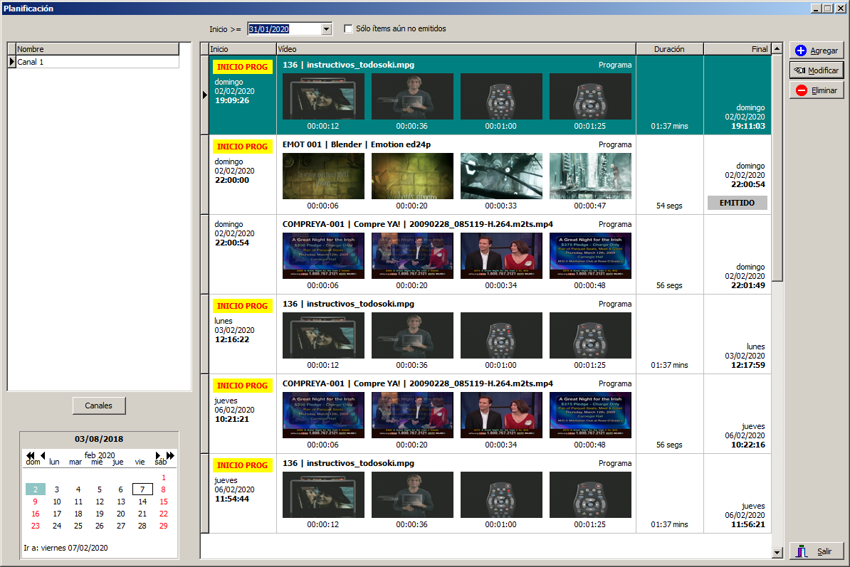 Los streams de salida se generan a partir de videos almacenados en el servidor y las playlists correspondientes, que especifican la secuencia de programas a emitir y los espacios para cortes publicitarios y promociones de cada día. Los espacios publicitarios se rellenan automáticamente en forma optimal a partir de los vídeos de cada tipo disponibles y la estrategia de inserción seleccionada.